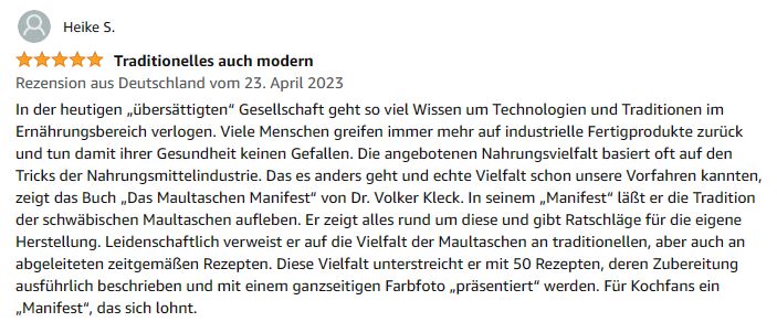 Amazon-Kundenrezensionen über mein Maultaschen-Manifest